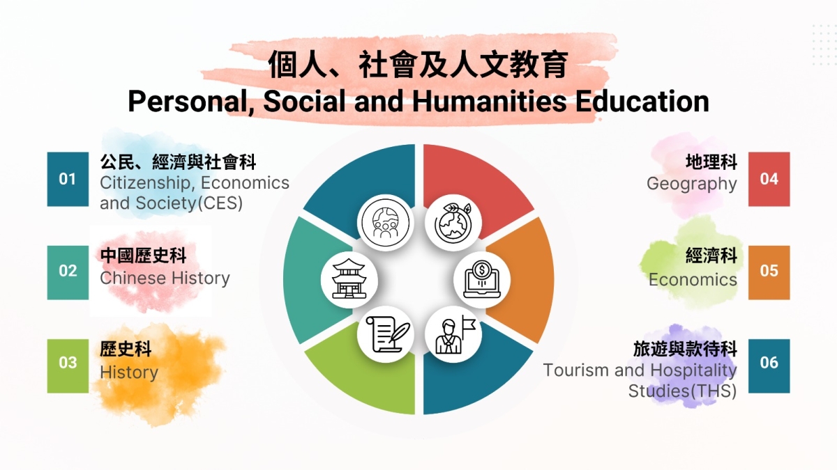 | 地理科 | 中國歷史科 | 經濟科 | 旅款科 | 綜合人文科 | 歷史科 | 生活與社會科 | 公民, 經濟與社會科 |