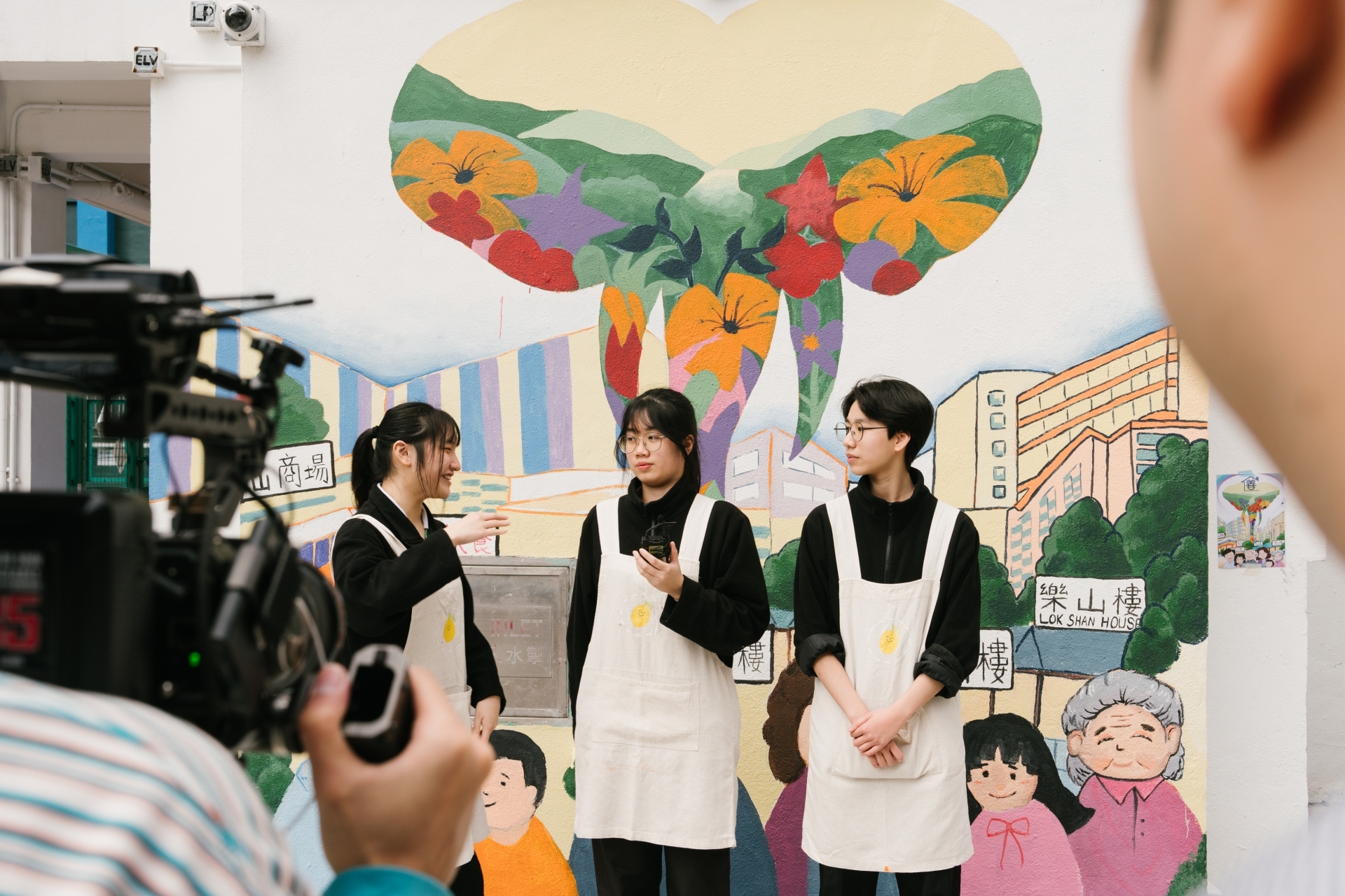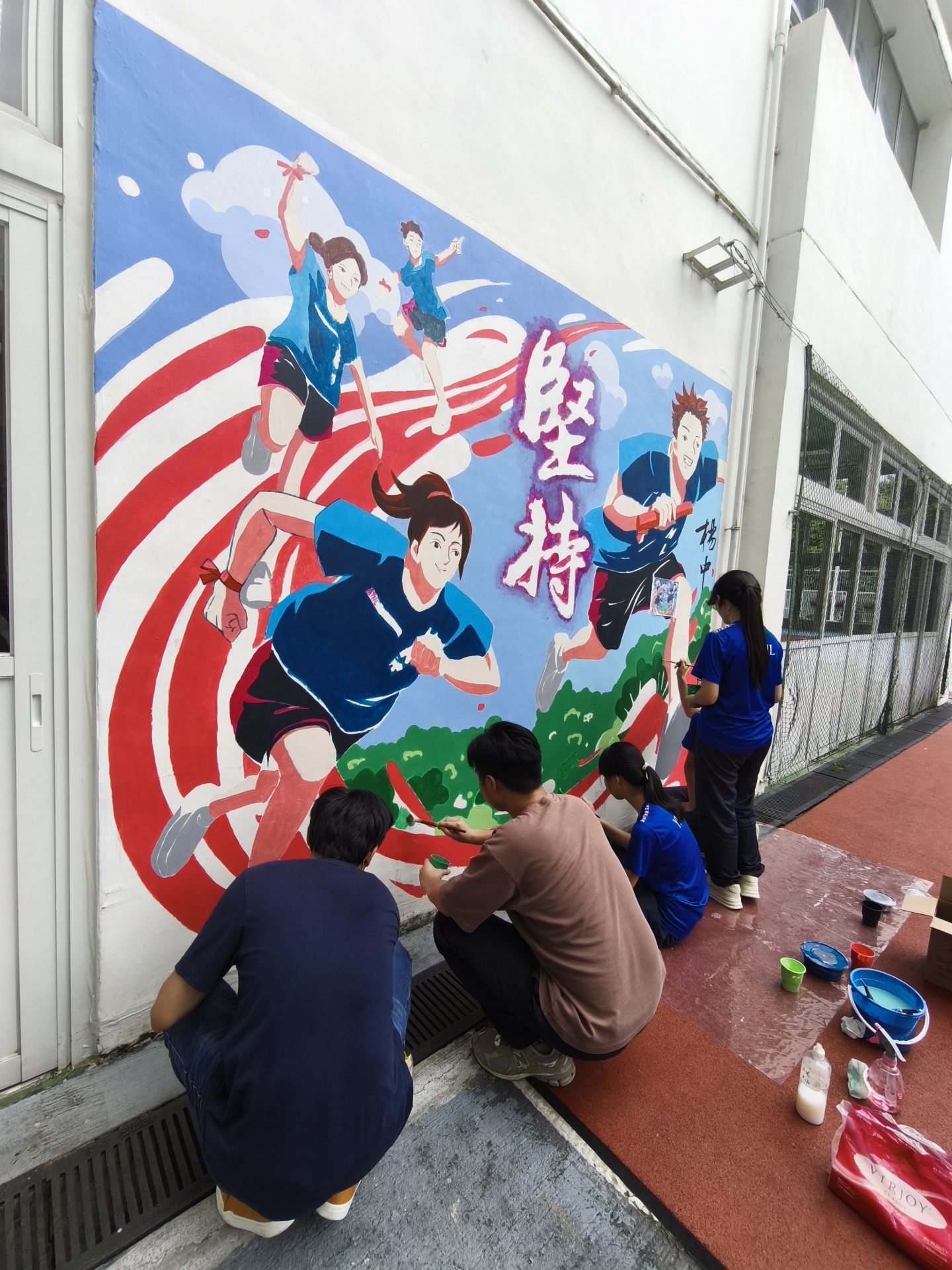 學生同心合力參與校園壁畫製作
