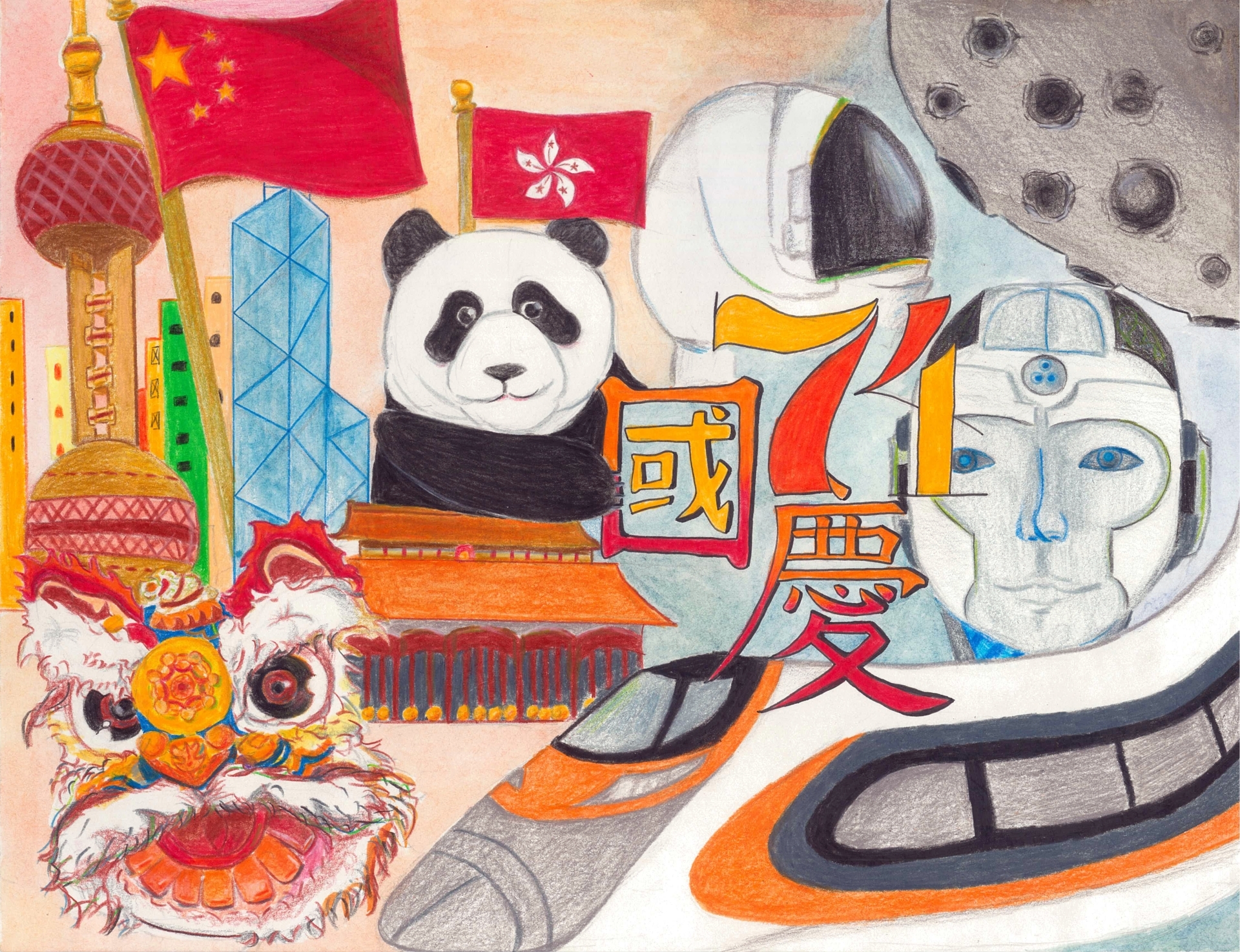 吳芷君同學於「金紫荊盃深港青少年慶國慶繪畫大賽」榮獲二等獎_得獎作品「燦爛中華之傳承」