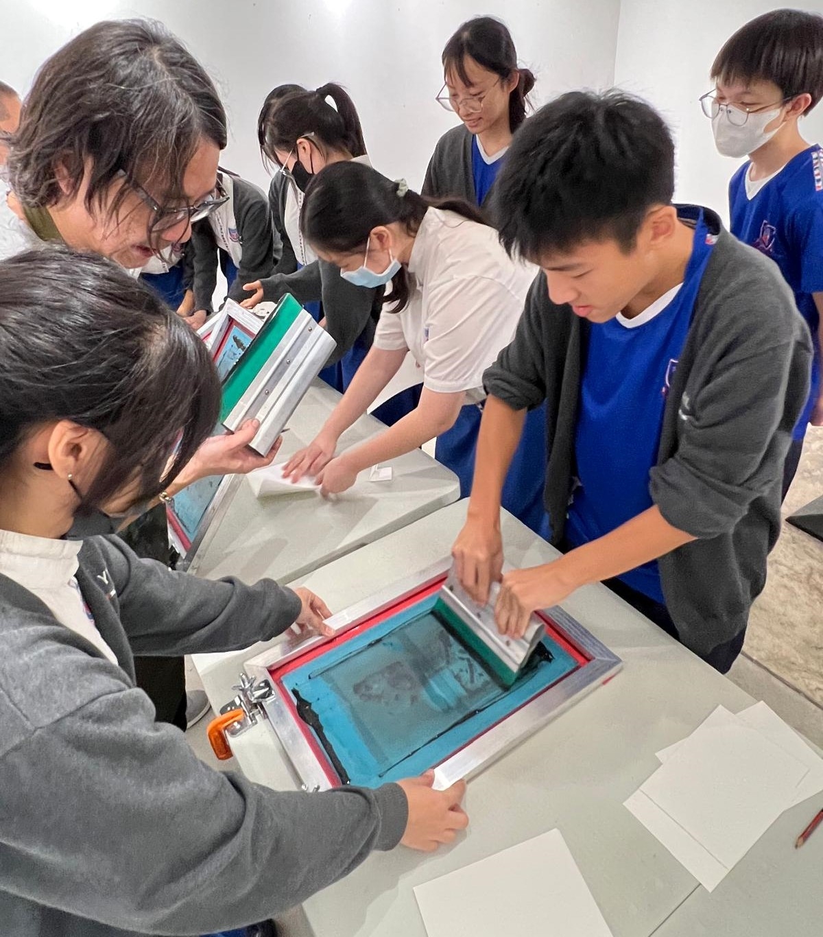 高中同學到「THE Bridge+人文藝術空間」參予絲網印刷工作坊