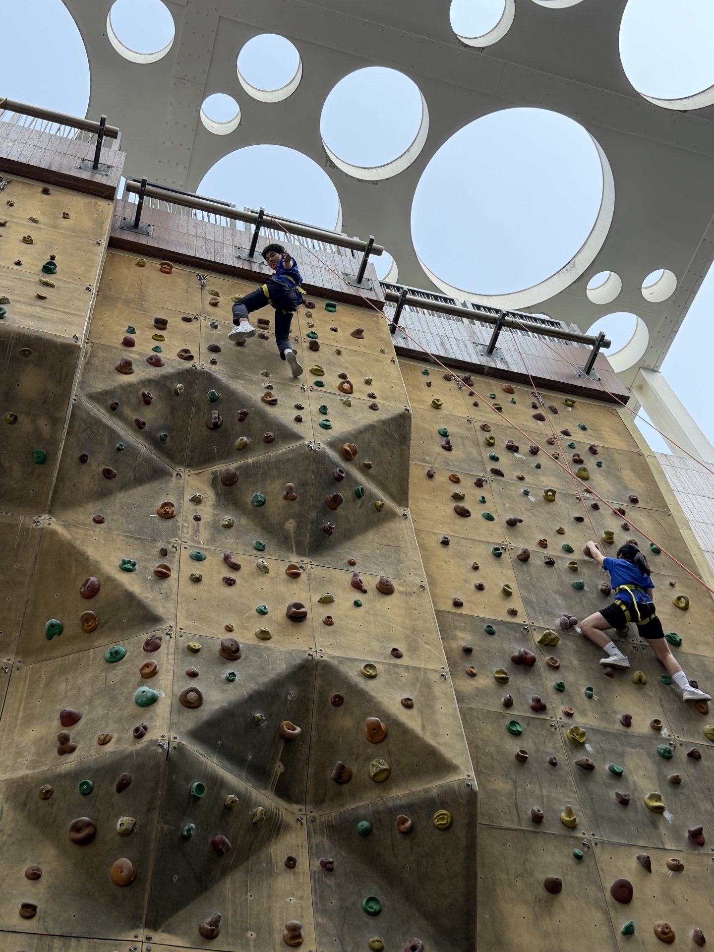本校中五級同學早前走出校園,參與了一場別開生面的「校外體育課」——運動攀登課堂!面對高聳的攀石牆,同學們展現出無比的勇氣與毅力,看準目標,一步一步向上攀爬。這項充滿挑戰性的運動,不僅鍛鍊了大家的體能、靈活性與手眼協調,更是一次突破自我、建立自信的絕佳體驗!
