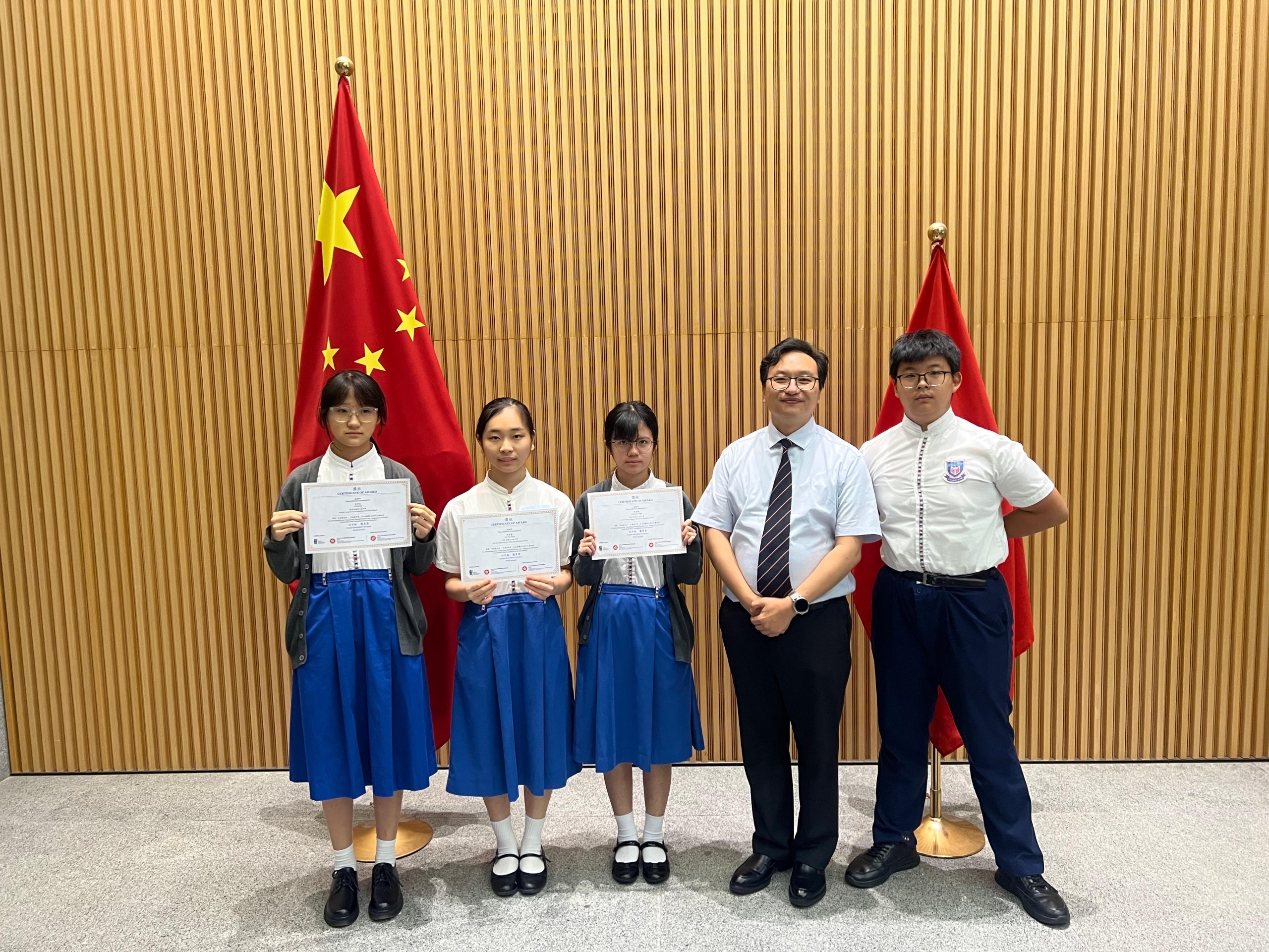 因應《香港國安法》實施五周年,本校五位同學——3A 易煒萁、3C 郭子進、3D 黎紫圓、3D 劉暢及 4C 黃詩雅參加了由律政司主辦的「香港國安法—守護與希望」社交媒體帖文創作比賽。
