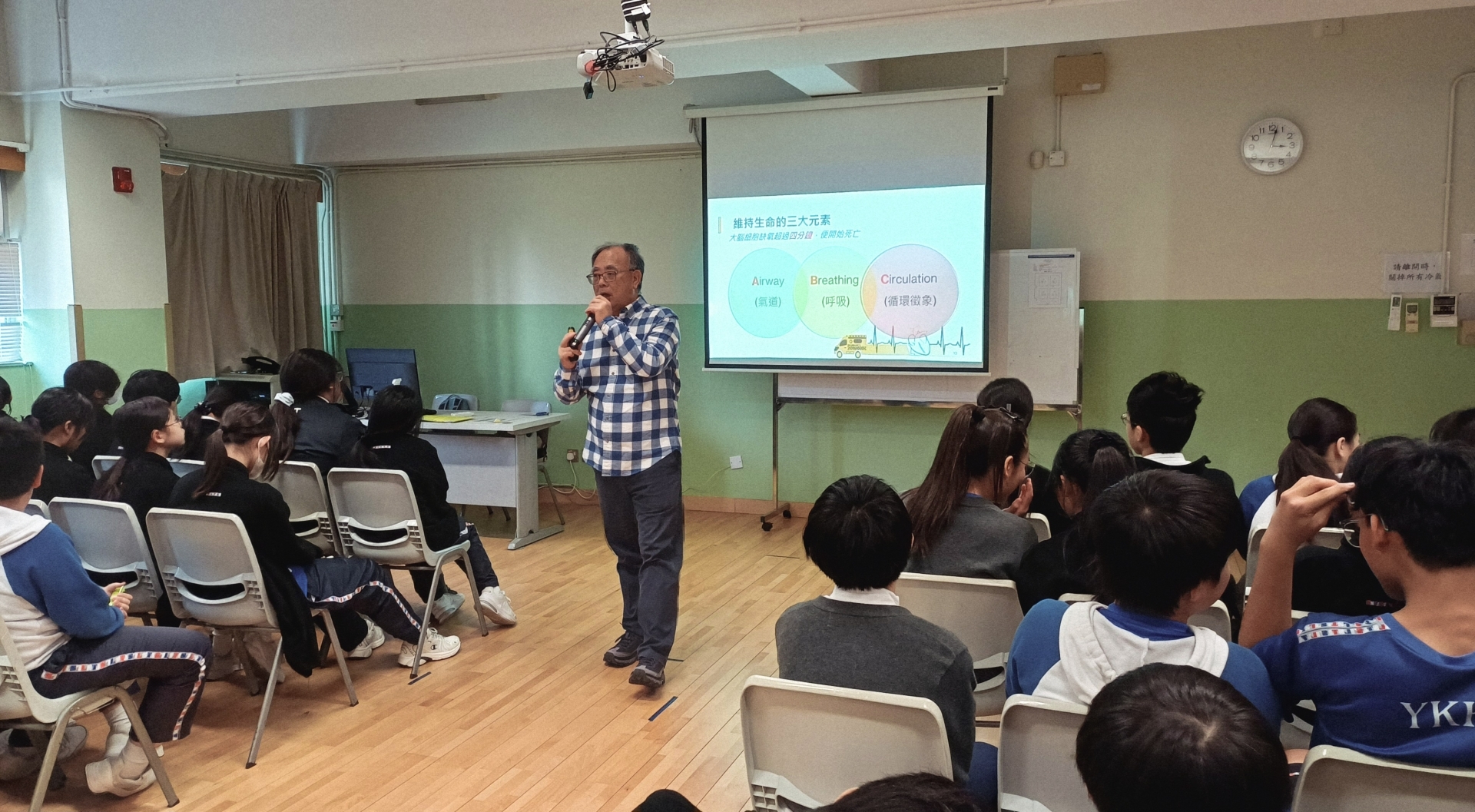 2025年12月12日(五)全方位活動時段,中二級同學參加了由香港聖約輸救護機構舉辦的「學⽣實⽤急救」講座,了解急救學的基本概念及技巧,達致臨危不亂、助⼈助⼰。