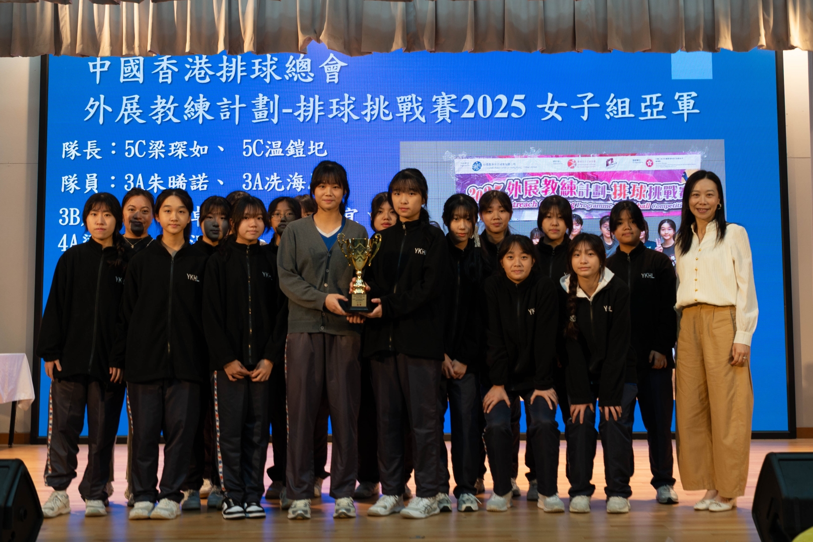 隊員:5C林凱晴、梁琛如、温鎧圯、5D陳燊榆、6B陳思穎、張翡珊、6C倪芷晴、蘇淖桐、6D余思琦 - 中國香港排球總會 外展排球挑戰賽2025 女子組亞軍