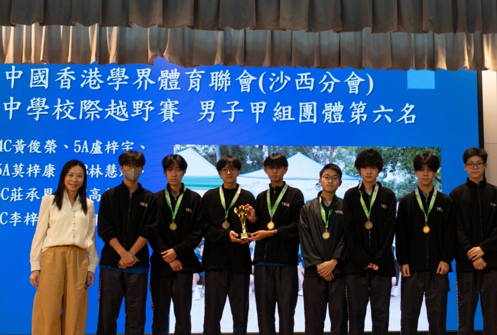 隊員:2B李文棟、3A趙駿翹、4A李子揚、岑皓朗、4C許文軒、郭梓謙、4D林子峰、5B曾梓晉、5C葉子鋒 - 中學校際越野賽 男子甲組團體第六名