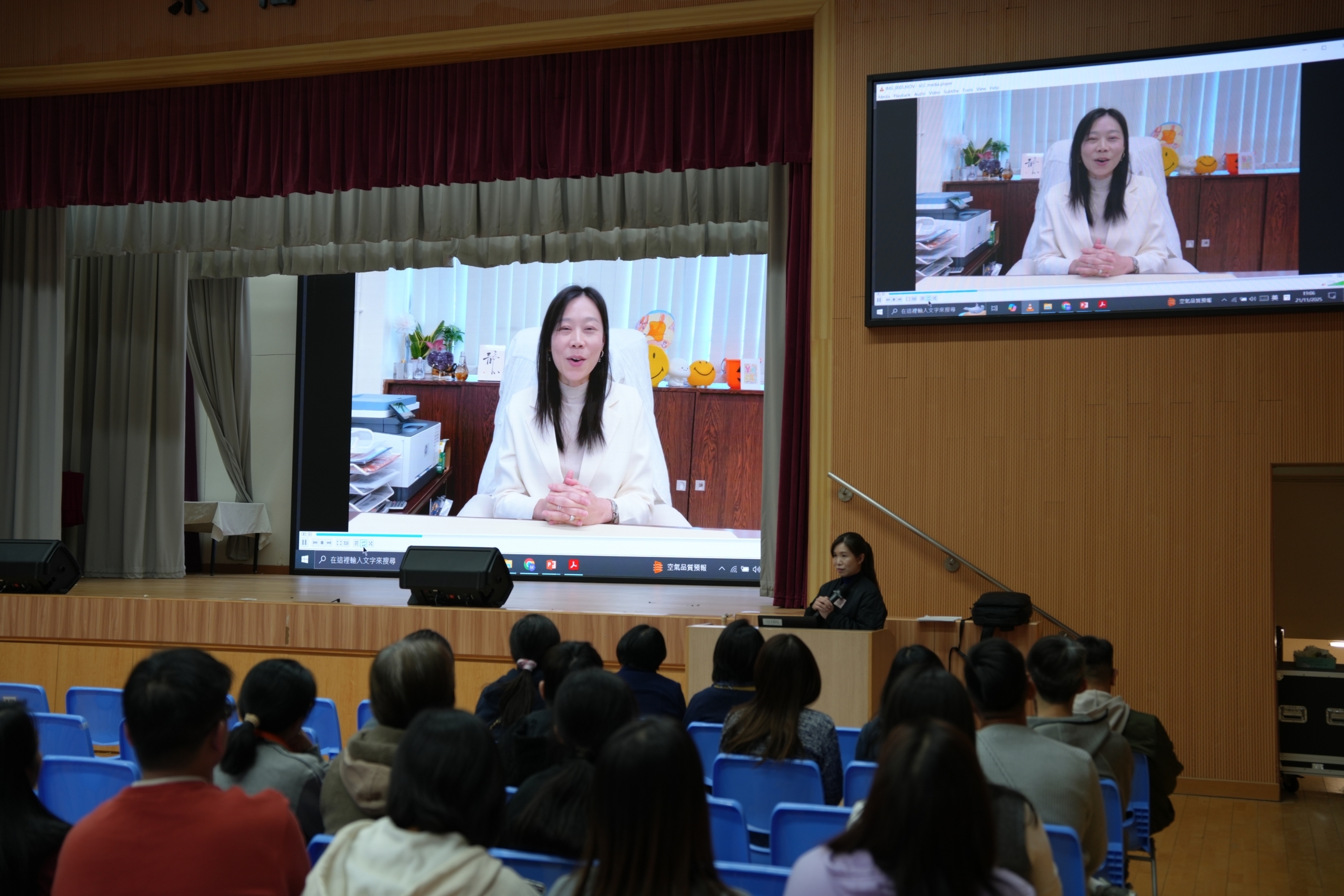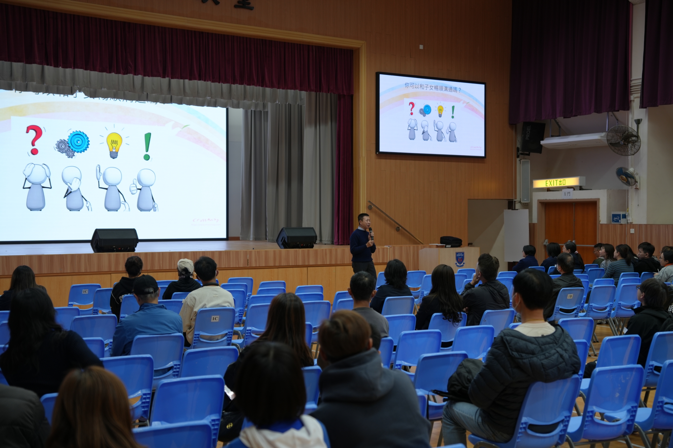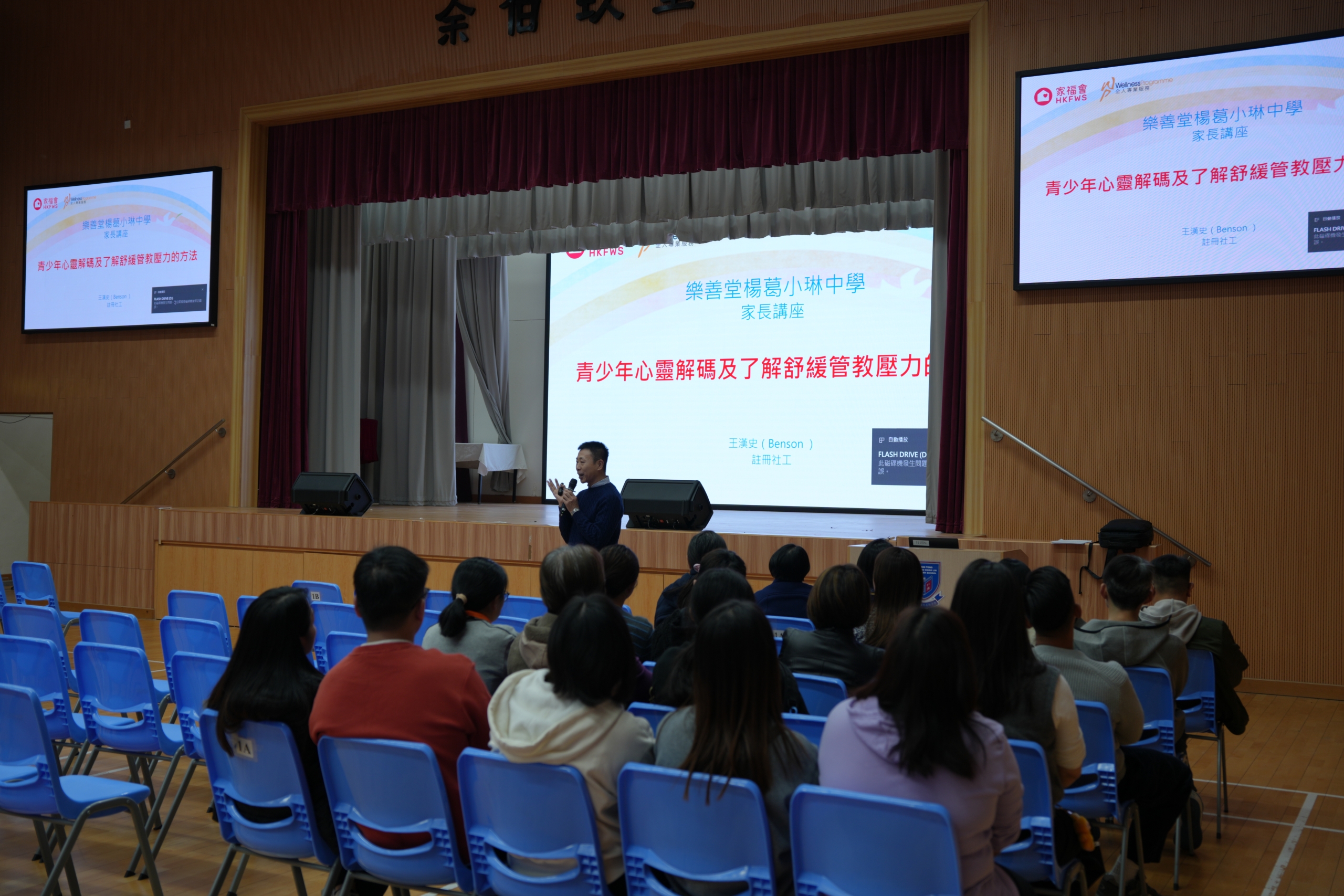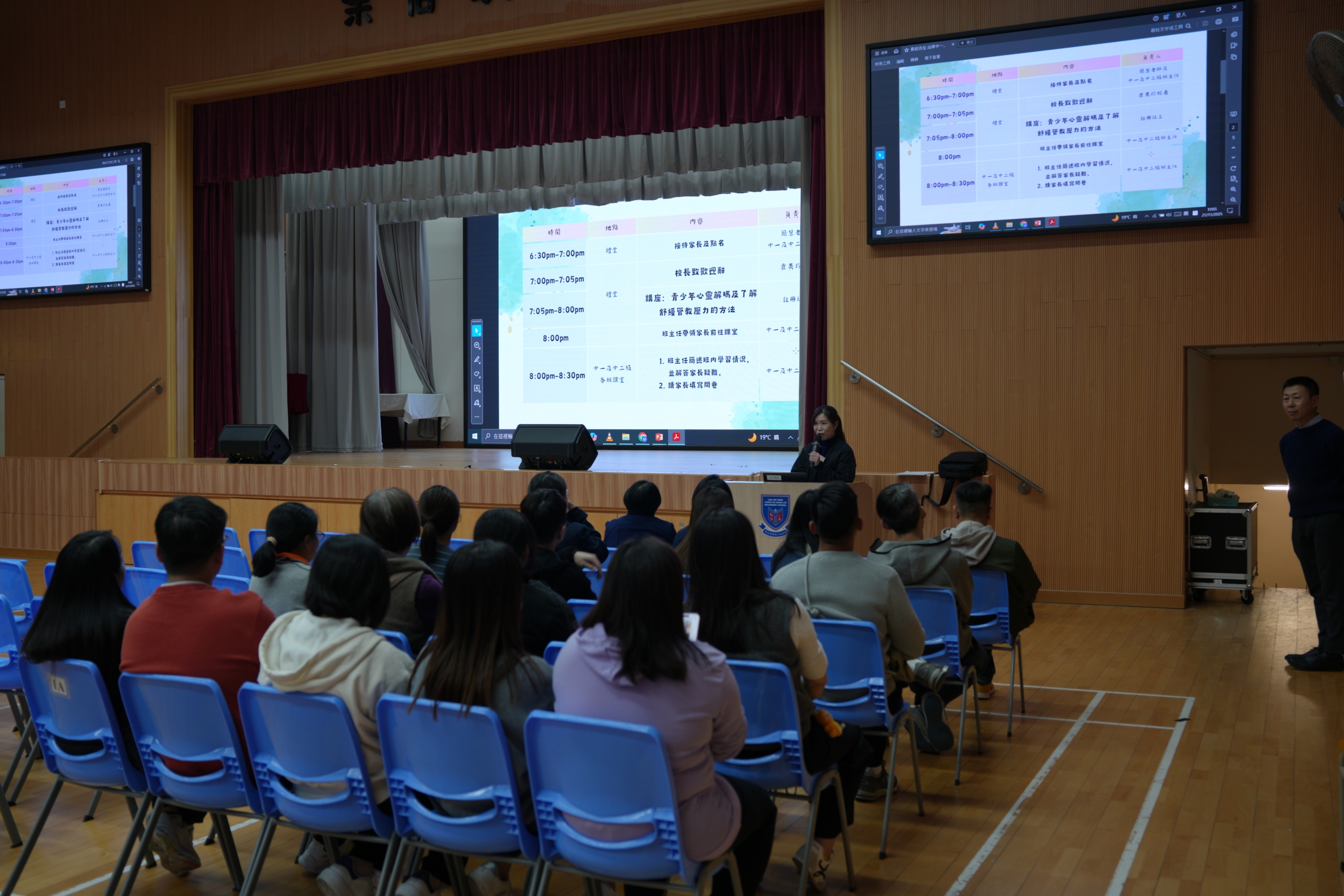 為了加強學校與家長的溝通及讓家長明白子女的成長需要,有效輔助子女健康成長,本校於 2025年11月21日為中一及中二級家長舉行家長晚會。當晚由註冊社工主講「青少年心靈解碼及了解舒緩管教壓力的方法」,講座後家長更與班主任會面,了解學生在中學的校園生活情況。