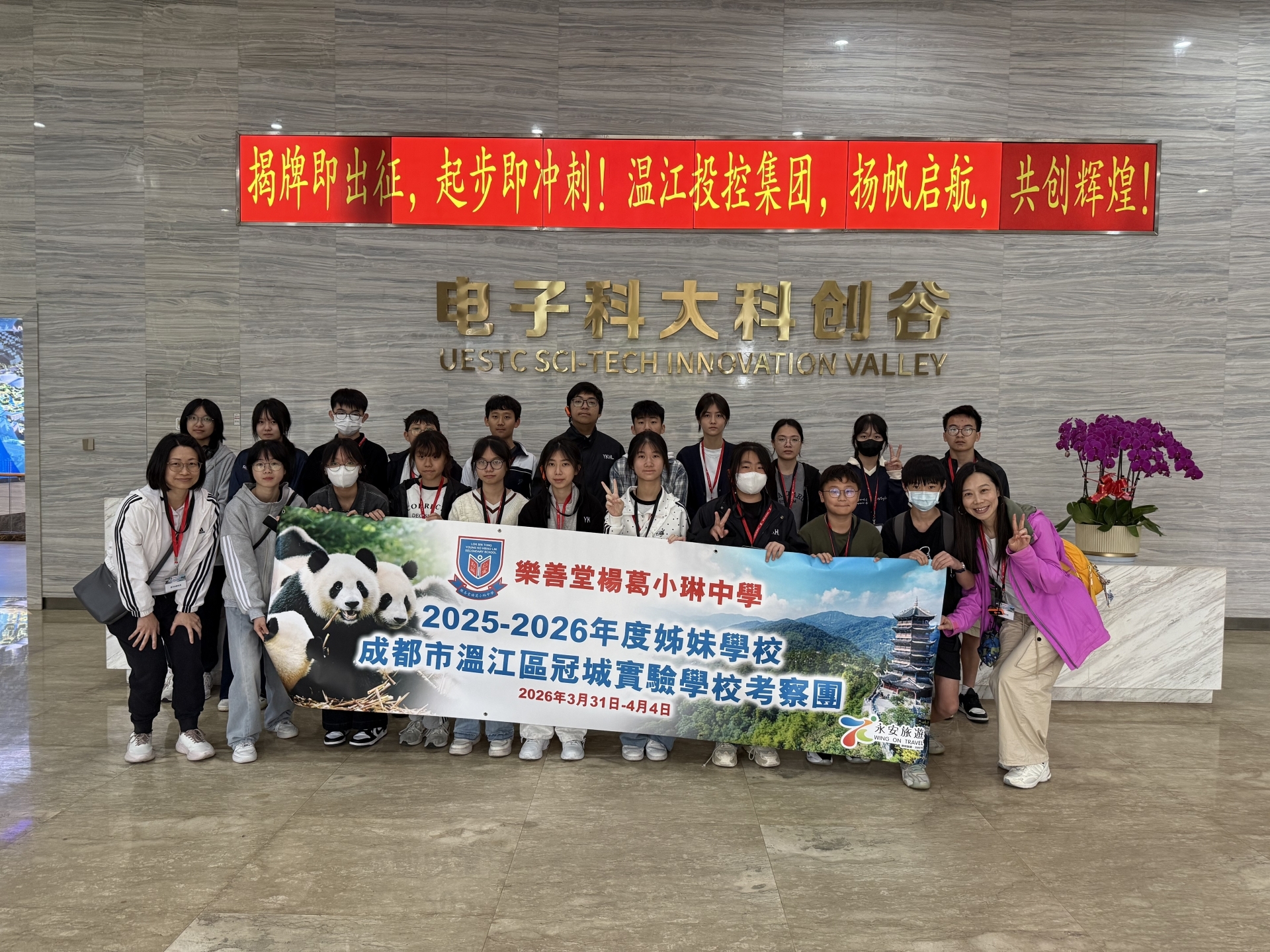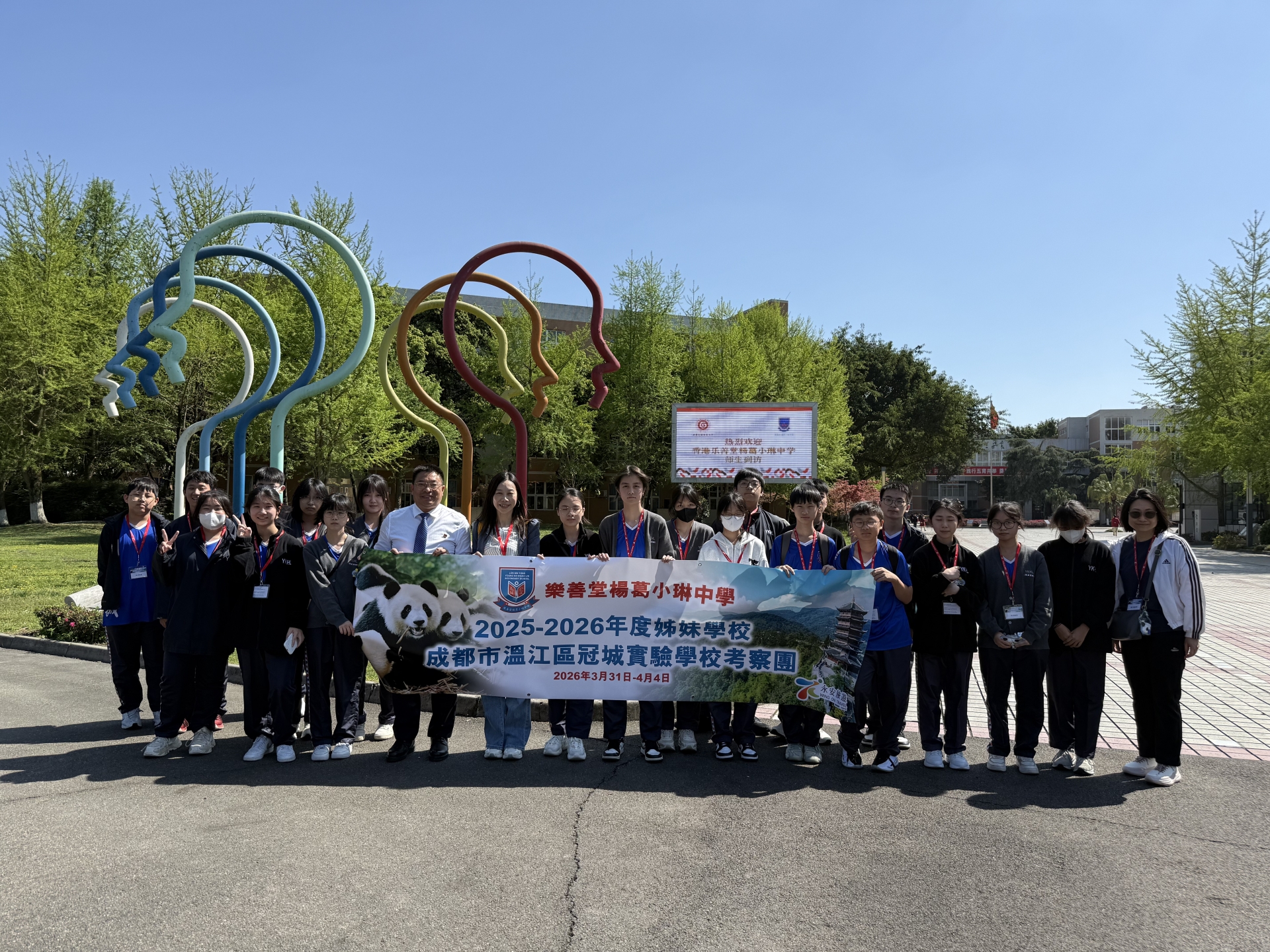 2026年3月31日至4月4日,本校20位同學前往四川展開為期五日的考察交流。抵埗首日,同學隨即前往姊妹學校「溫江區冠城實驗學校」進行深度的學術與文化互動,兩地師生熱烈交流,建立起深厚友誼。行程涵蓋古今精華,師生實地考察了都江堰水利工程、三星堆博物館及電子科大科創谷三醫創新中心,見證古代建築力學與現代醫療創科的完美交融。