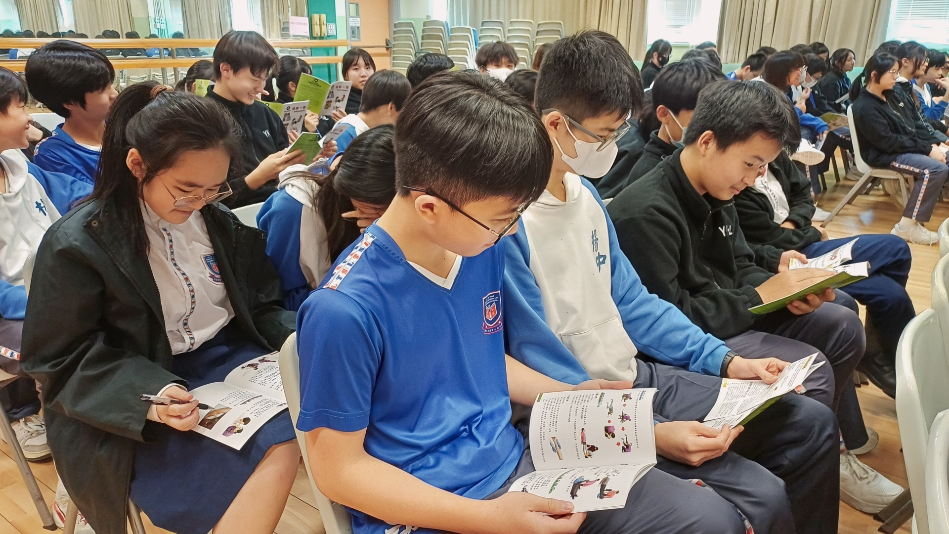 2025年12月12日(五)全方位活動時段,中二級同學參加了由香港聖約輸救護機構舉辦的「學⽣實⽤急救」講座,了解急救學的基本概念及技巧,達致臨危不亂、助⼈助⼰。