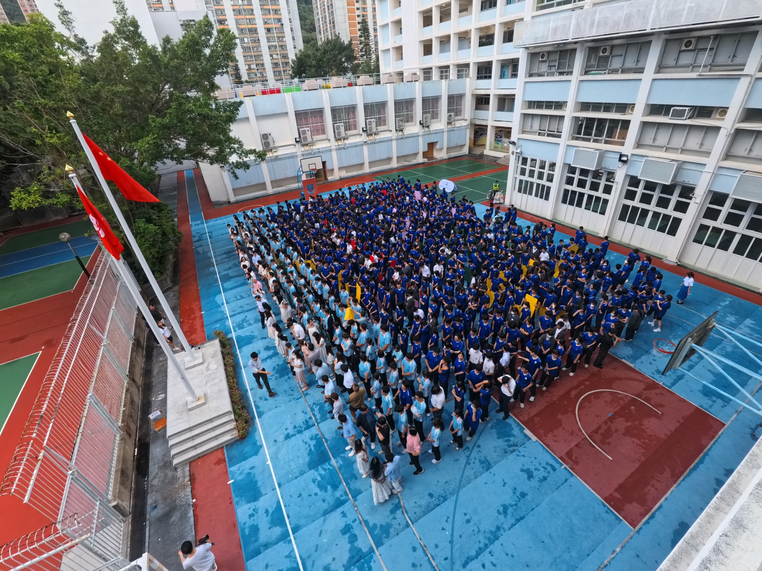 楊中35周年校慶快樂!2025年10月13日(一)為本校校慶拍攝日,由楊中校友陳妙君小姐,帶領全校師生歡呼慶祝!她更帶同其航拍機團隊回饋母校,以航拍鏡頭記錄全體師生的歡聚時刻,為校慶添上精彩一頁!更多相片可按此連結:Google 相簿