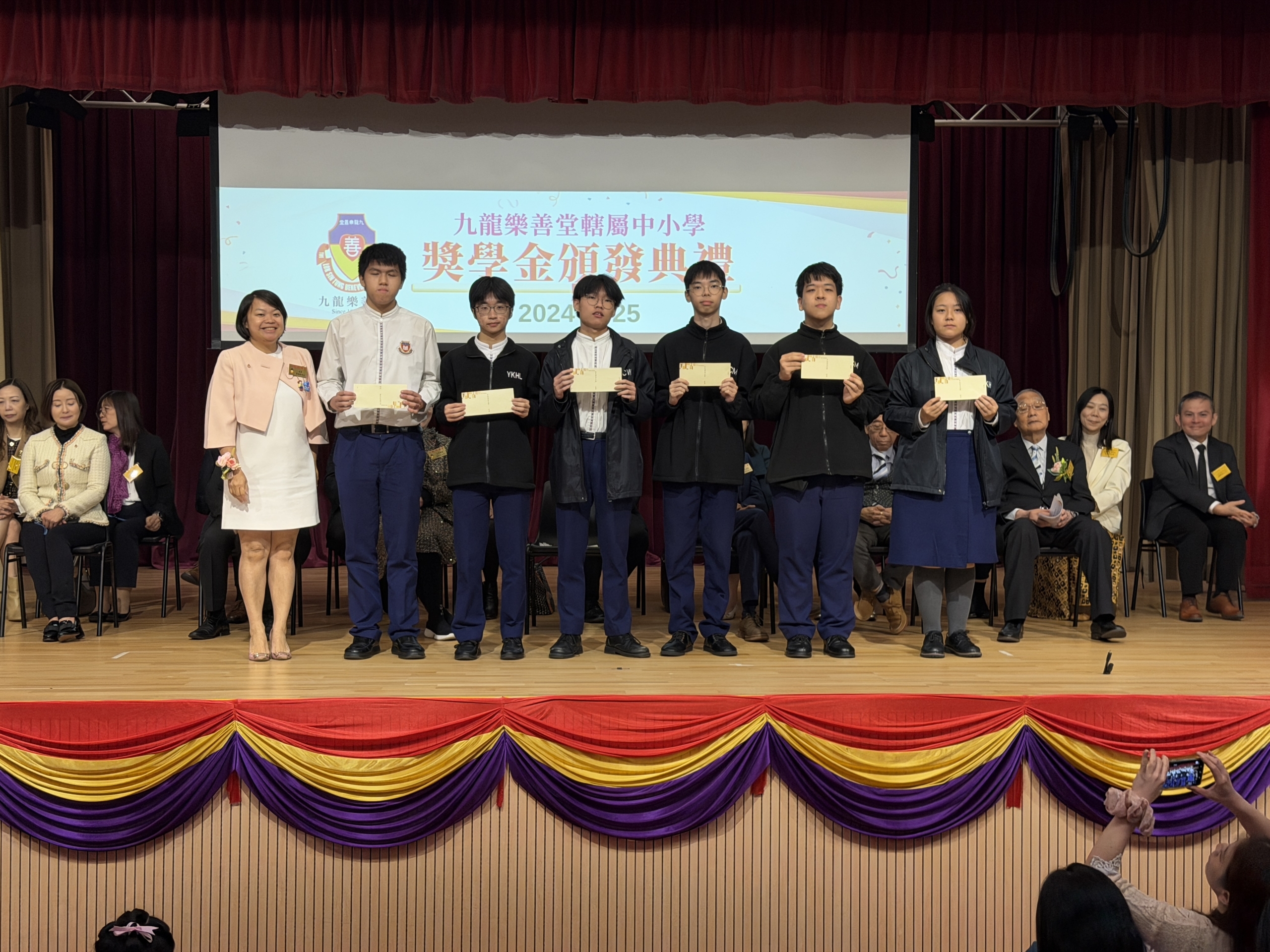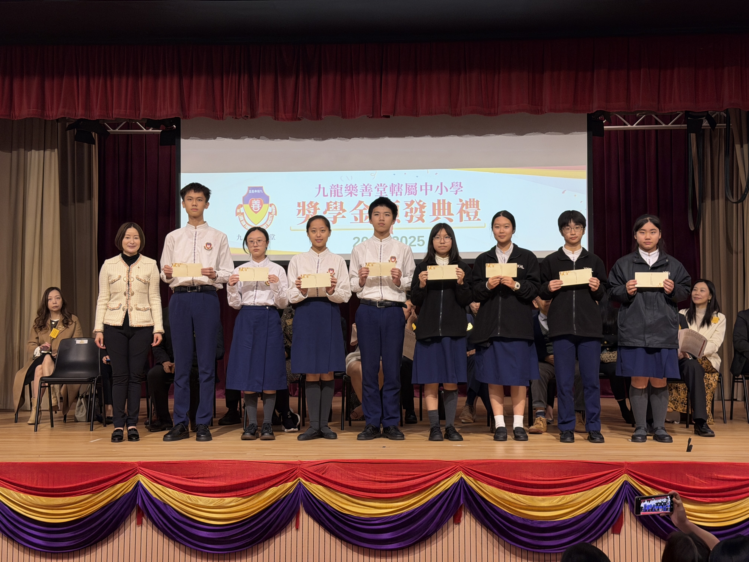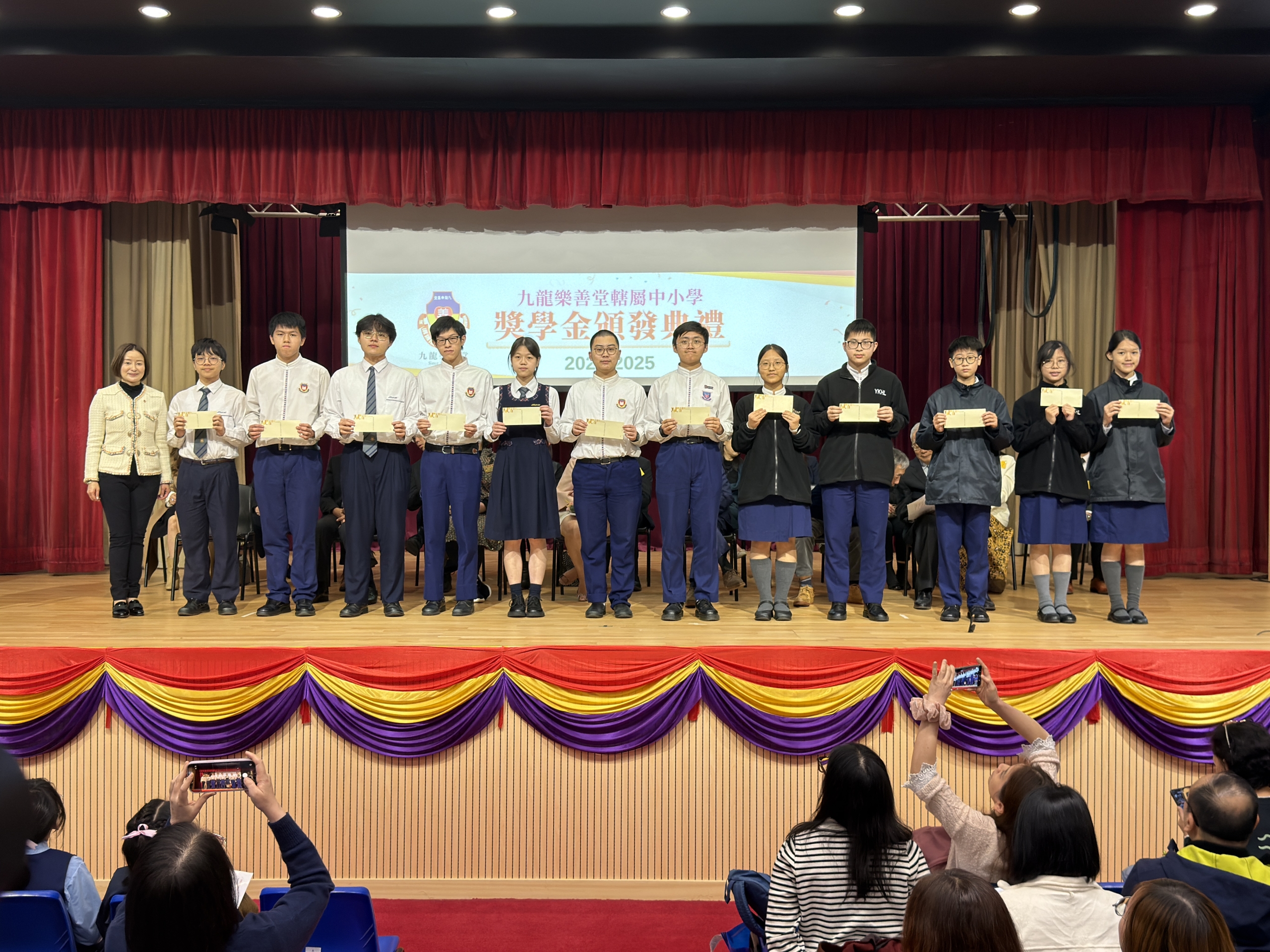 本校多名學生於上學年在學業成績及品行方面表現卓越,獲九龍樂善堂頒發「樂善堂聯校獎學金」,以茲嘉許。頒獎典禮已於 2025 年11月21日 (星期五) 假樂善堂王仲銘中學禮堂圓滿舉行。得獎名單為下:
