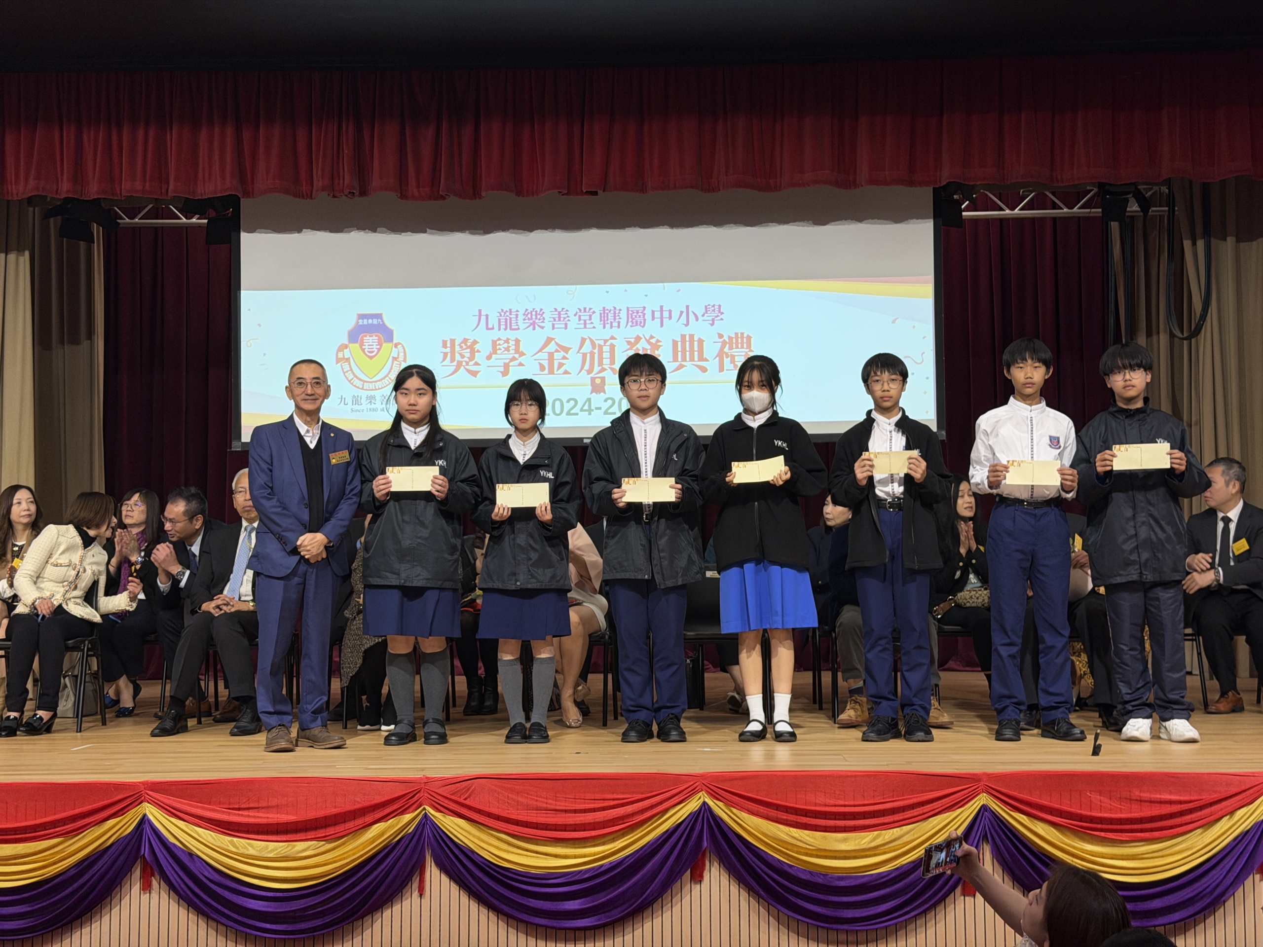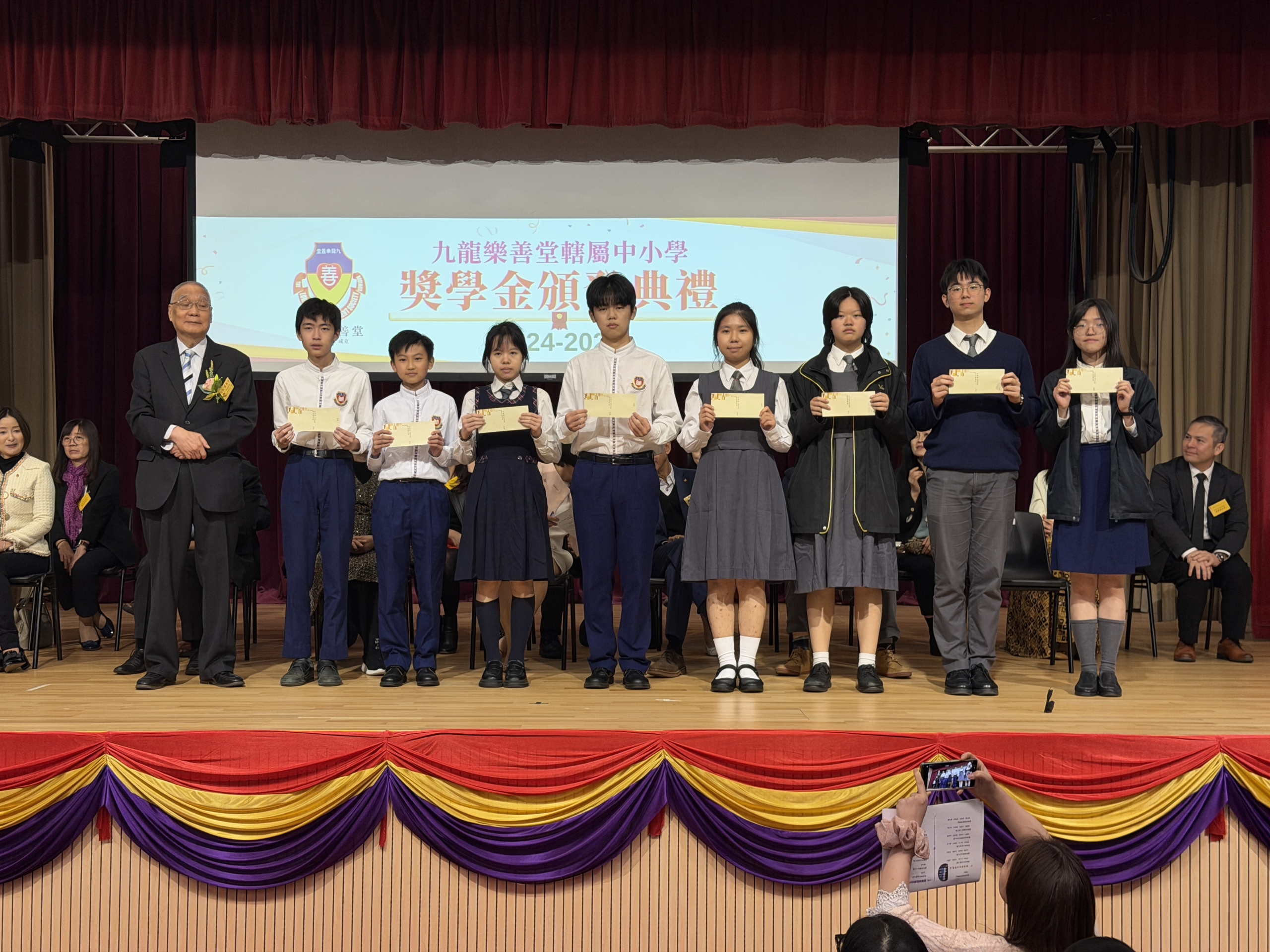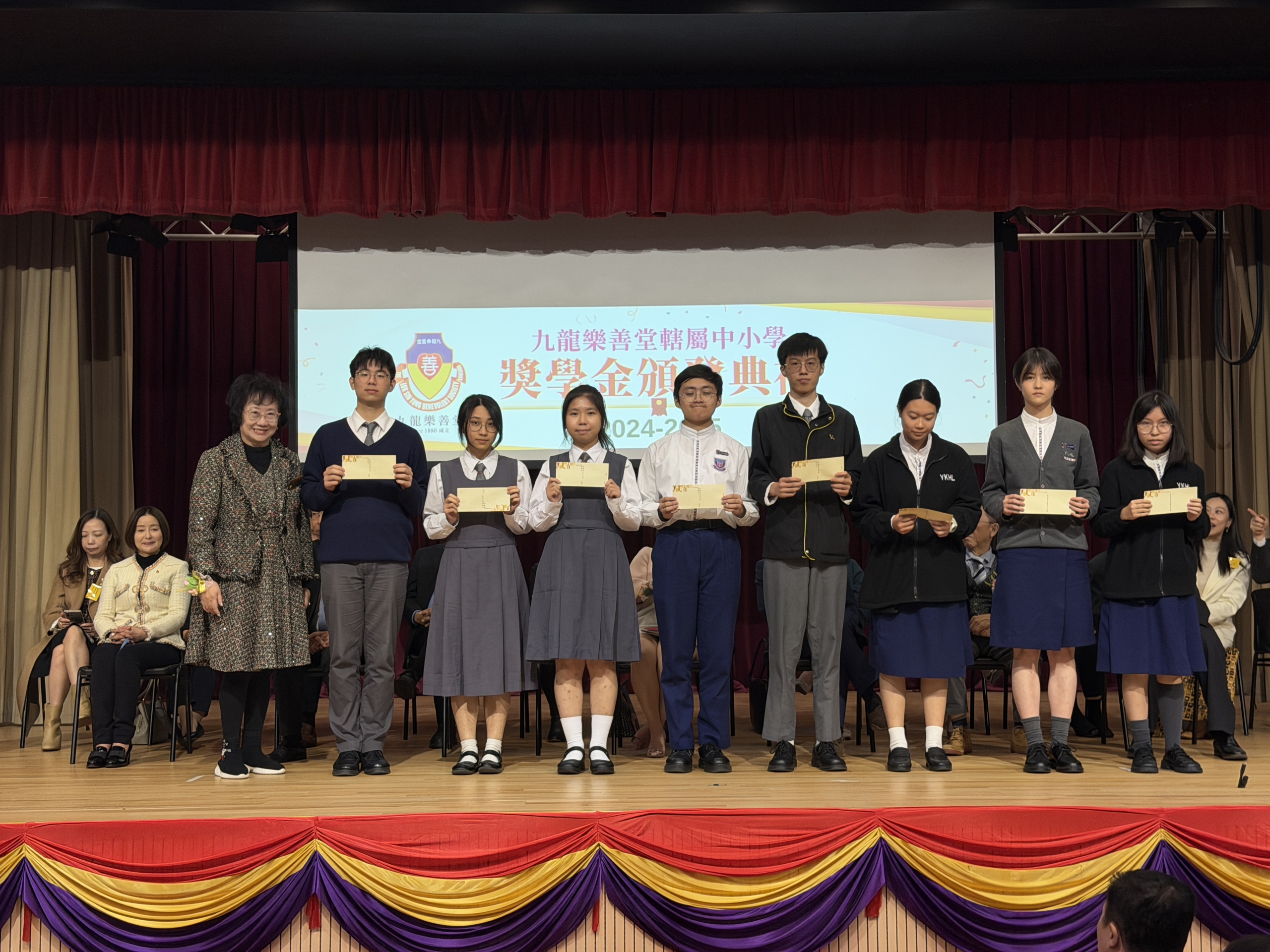 本校多名學生於上學年在學業成績及品行方面表現卓越,獲九龍樂善堂頒發「樂善堂聯校獎學金」,以茲嘉許。頒獎典禮已於 2025 年11月21日 (星期五) 假樂善堂王仲銘中學禮堂圓滿舉行。得獎名單為下: