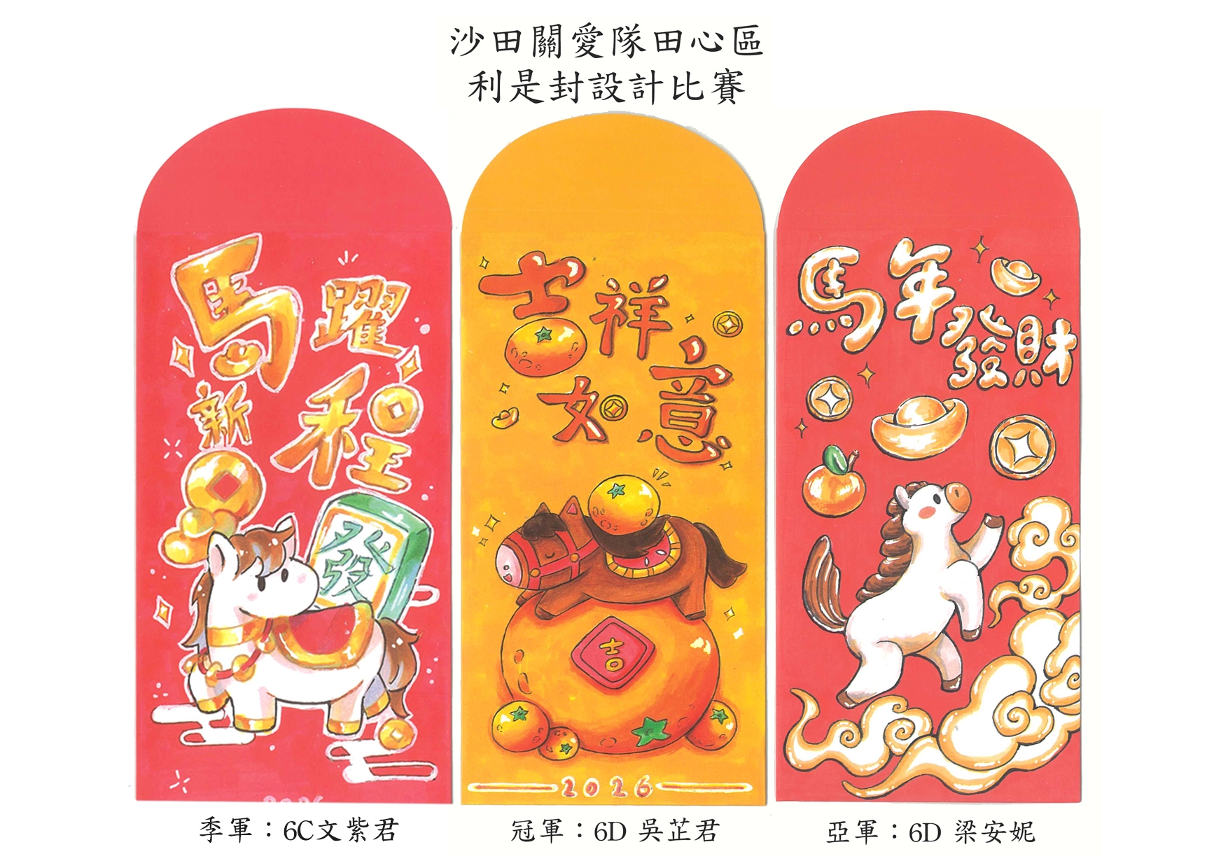 值得一提的是,冠、亞、季軍同學的設計更被主辦方印製成精美實體利是封,將祝福傳遞給社區街坊。
