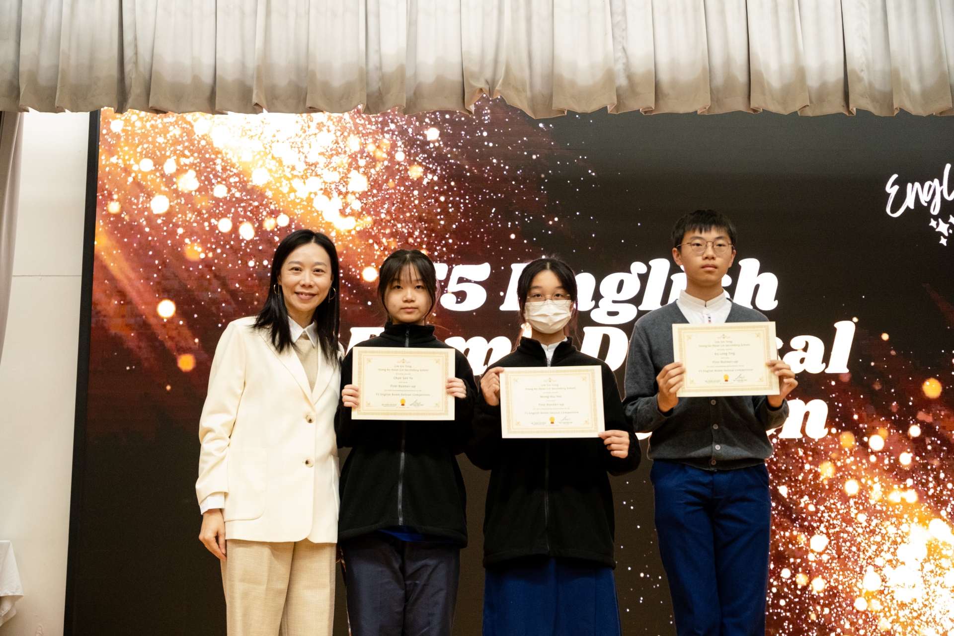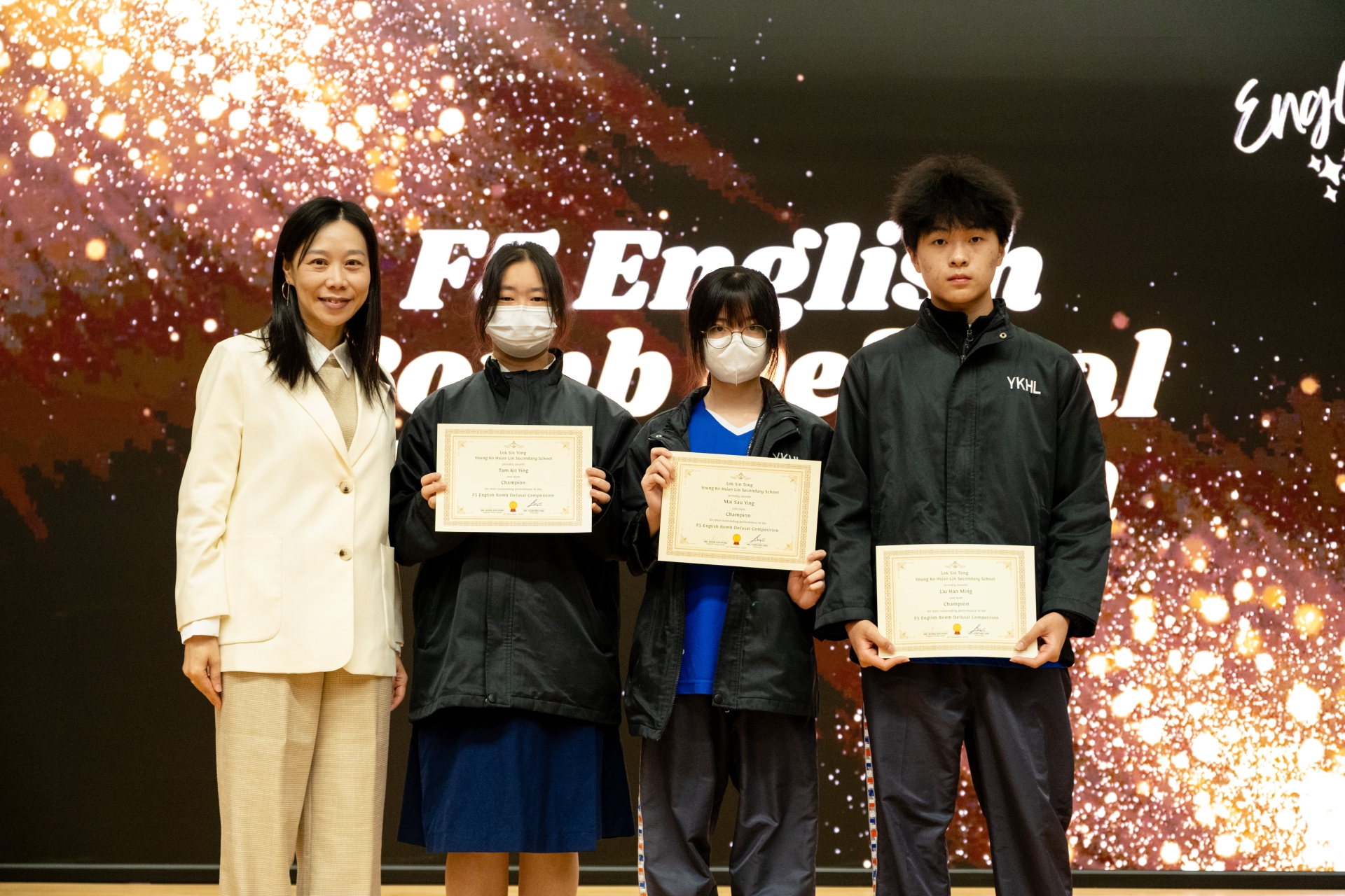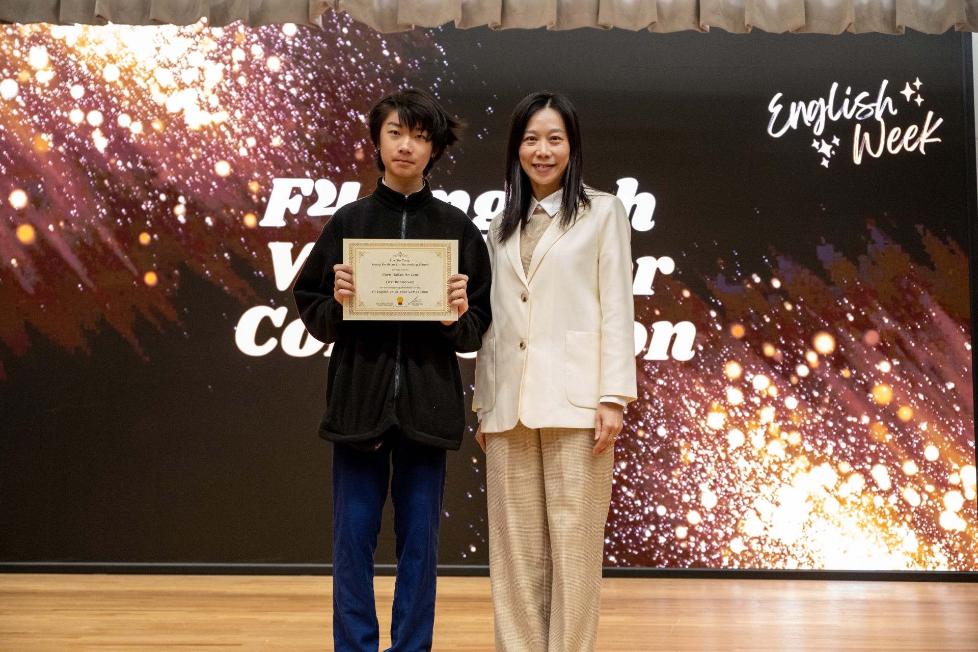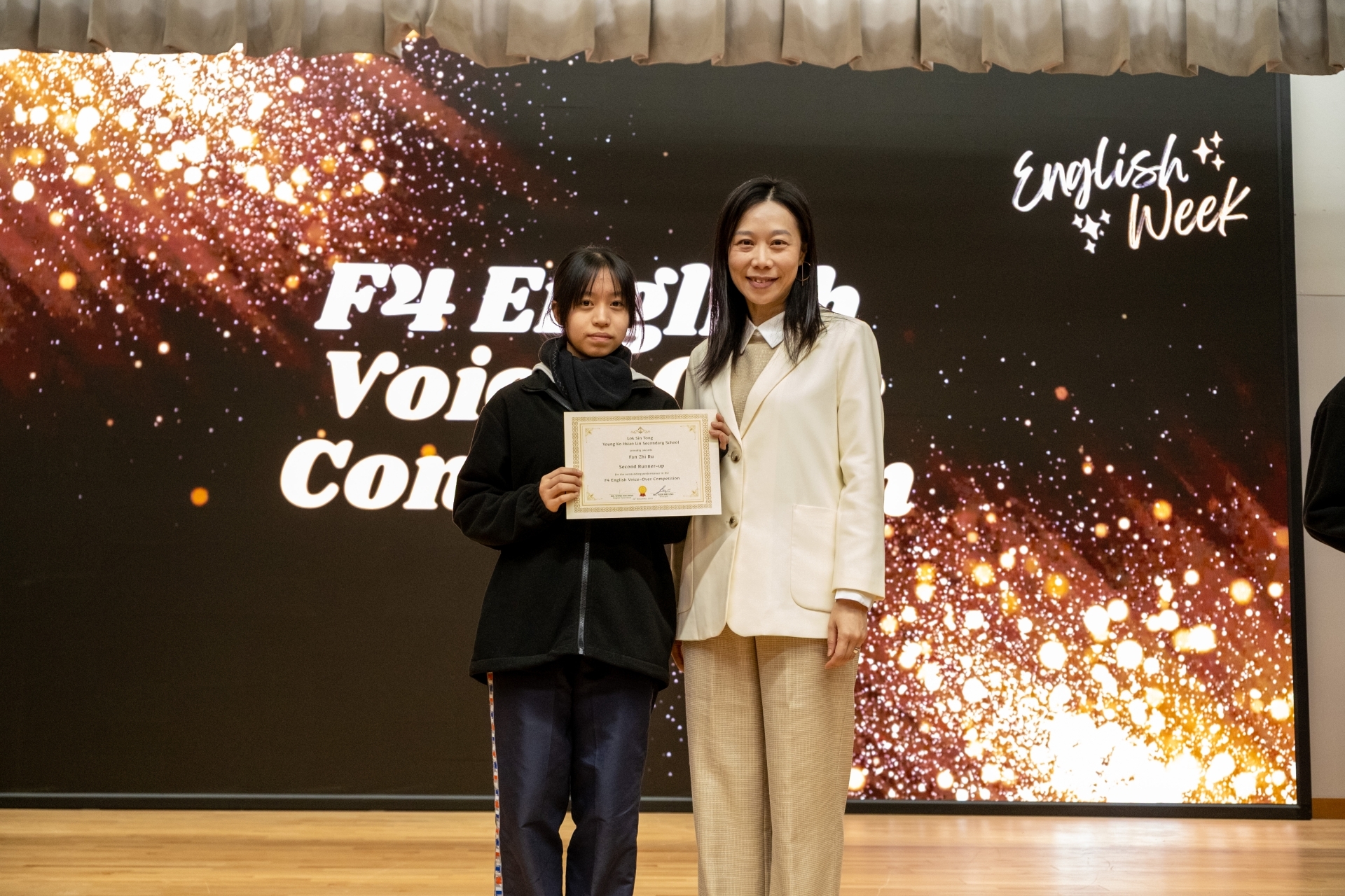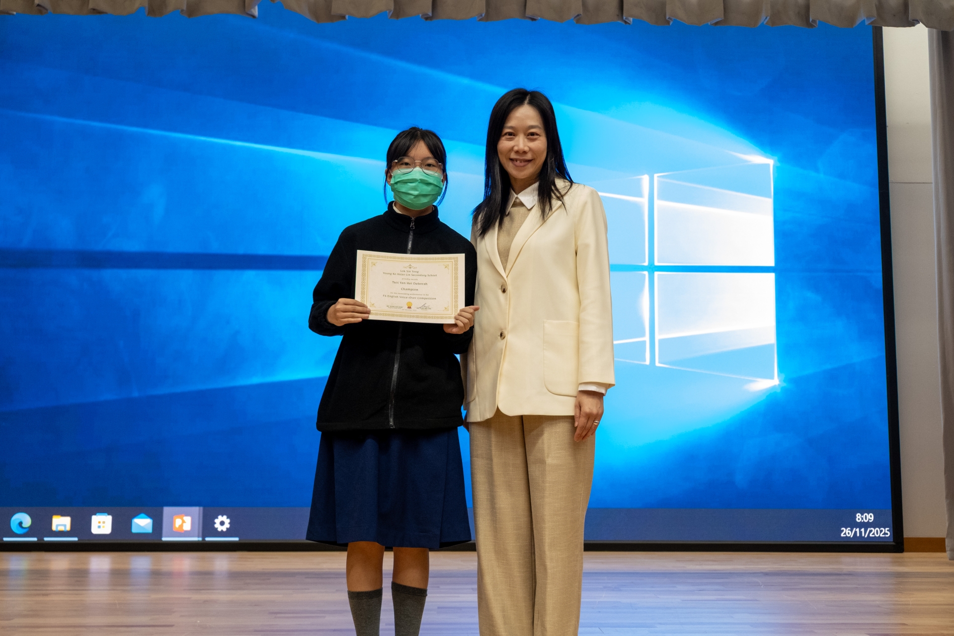 本日早會為聯校科學展覽分享及證書頒發,以及英文周班際比賽頒獎,得獎名單為下: