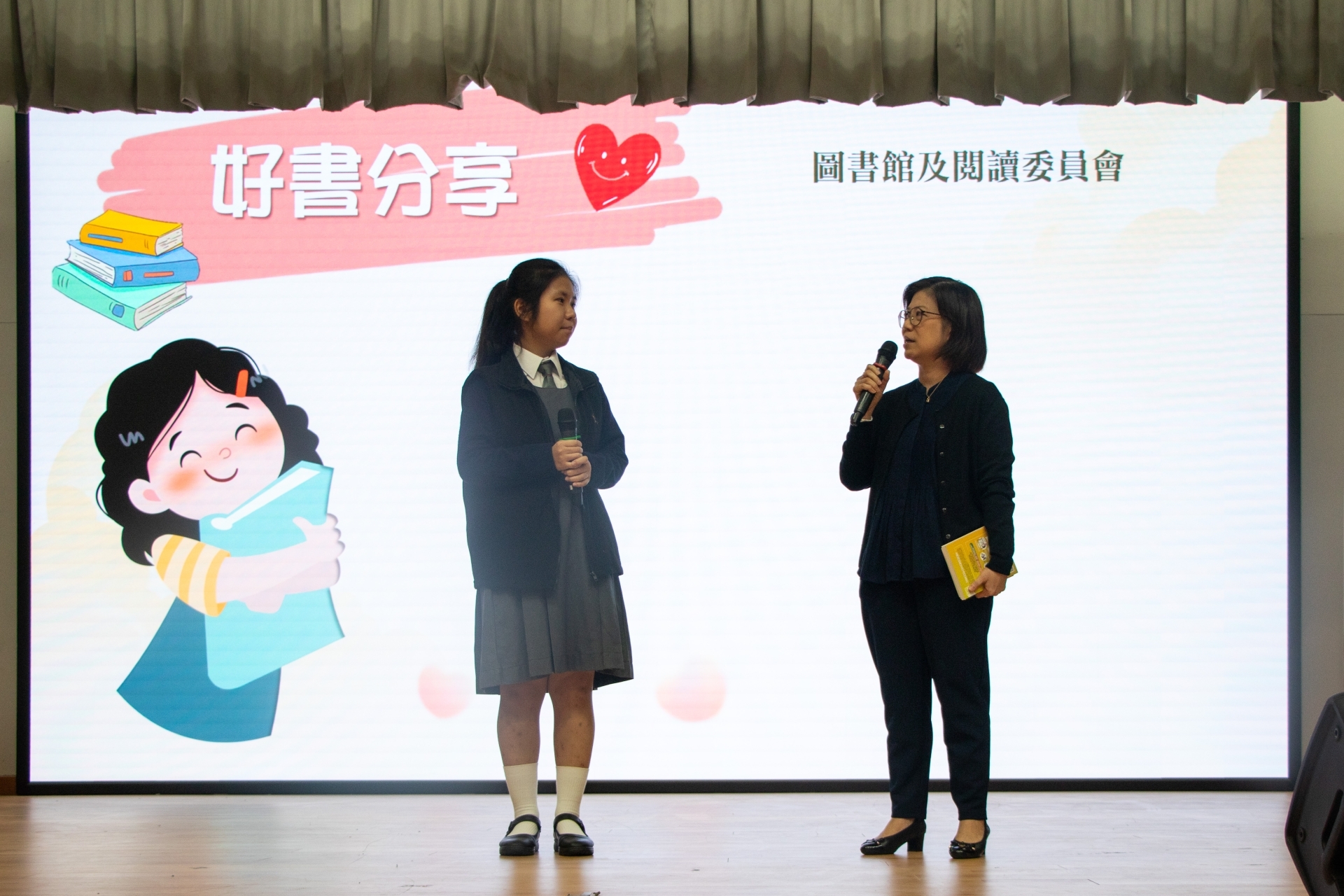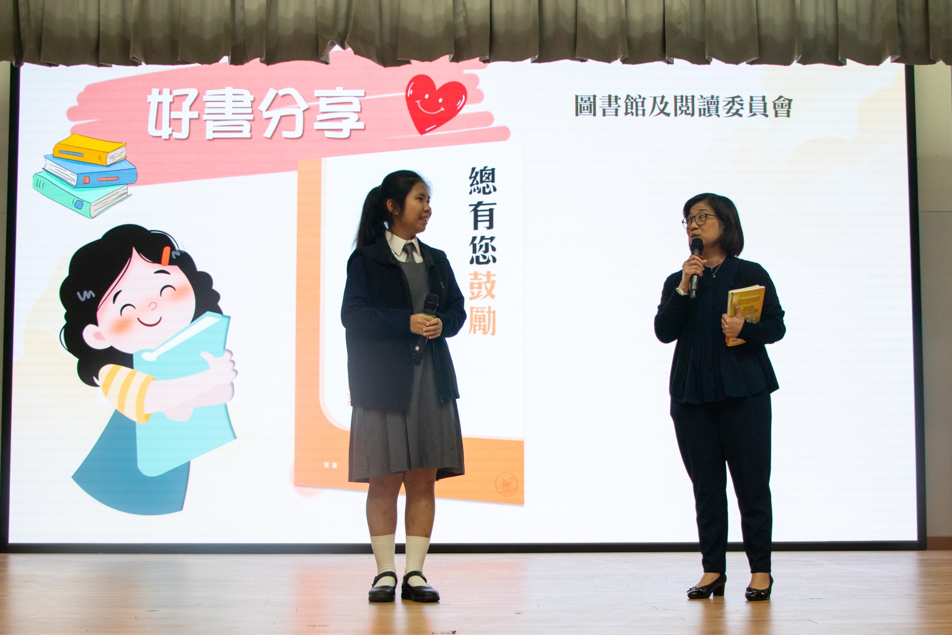 本日早會由中文科負責,分別有頒發校訓思源書法比賽獎項及由老師進行好書分享環節。
